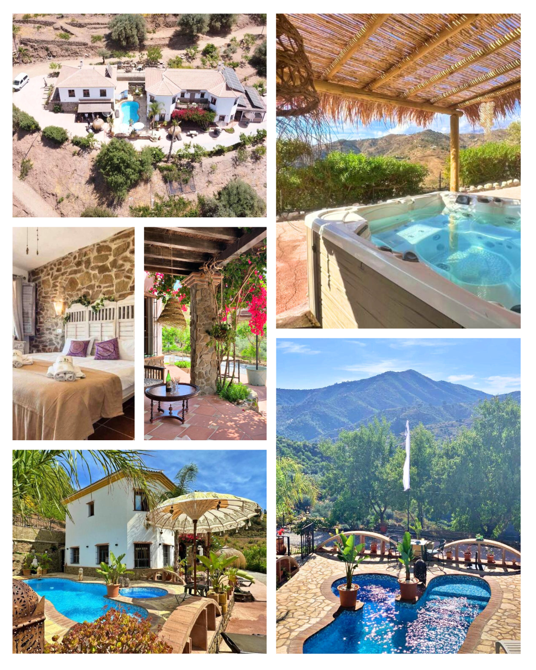 mountain views, pool, terraces, hot tub, quiet corners and plenty of space to learn and relax