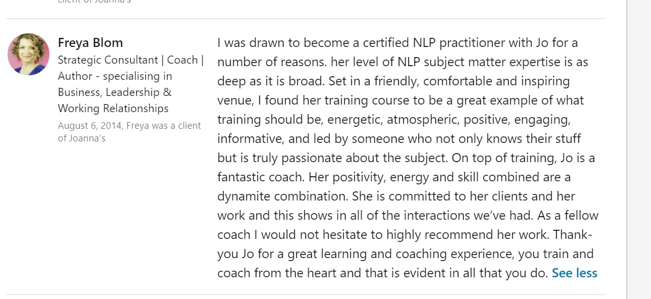 If you are already a coach, therapist or mentor, NLP gives you: